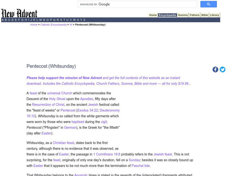A detailed description of Pentecost according to the Roman Catholic Church. Includes information on the celebration of Pentecost, its meaning, and traditions that are associated with Pentecost. Please note that ?The Catholic...