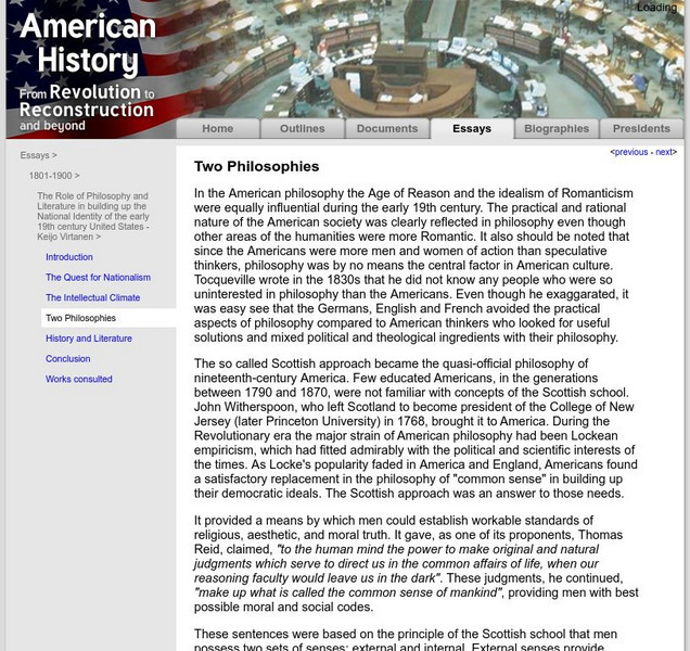 American History: Essays: Philosophy and Literature: Intellectual Climate