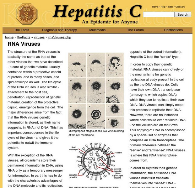 A good page devoted to the RNA family of viruses that differ slightly from standard DNA viruses. Discusses the difference and characteristics of such viruses.