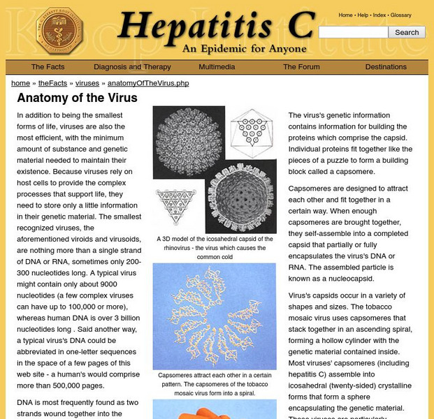 Excellent explanation of the structure of a virus. Includes graphics and a good explanation of viruses.