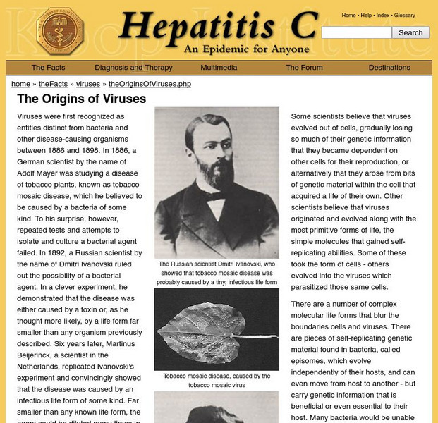 A very good history that covers the discovery of viruses and their basic characteristics. Includes short biographical information on some of the scientists who contributed to the study.