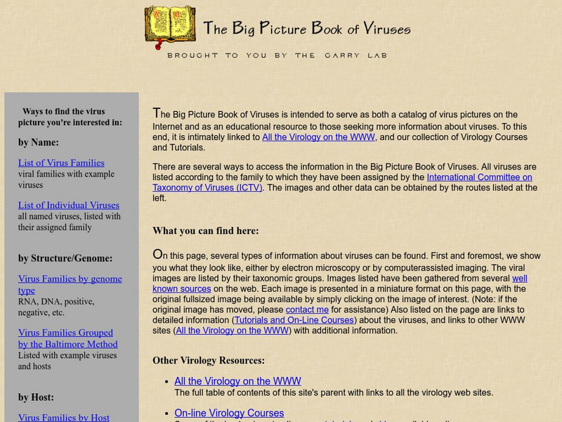 This site has a catalog of all known viruses, including a picture of each, structure, family, hosts, and more.