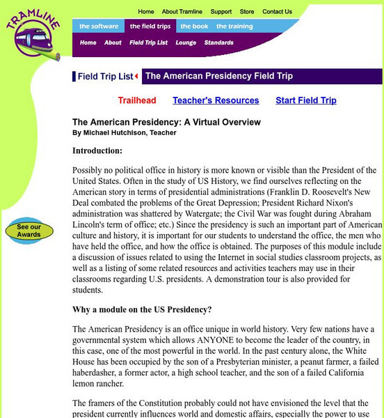 Use this site to learn all about the history behind the office of the President of the United States and some interesting facts about past administrations. There is a complete list of teacher resources and a virtual tour of the American...