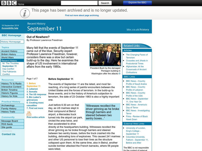 In-depth exploration of September 11th and the international events that preceded the attack. Includes pages on the events before September 11th, including US involvement in Lebanon and Somalia and the relationship between the US and...