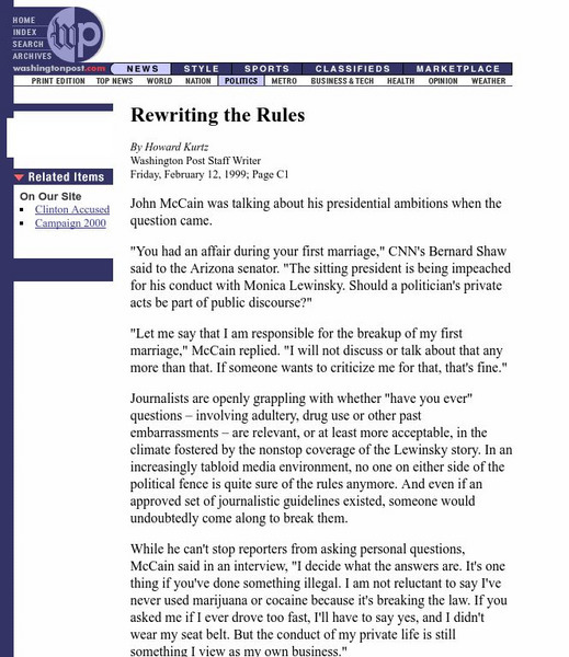 Washington Post article dealing with ethics and guidelines of journalists reporting hard news. Provides material for debate and discussion. Interesting article.