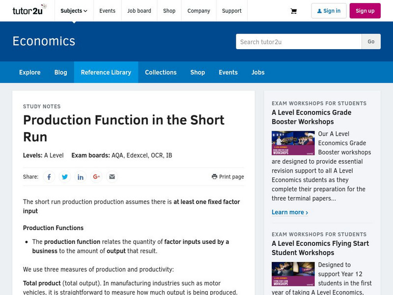 This site defines the "short run', and shows with graphs how short run productivity relates to quantity (output).