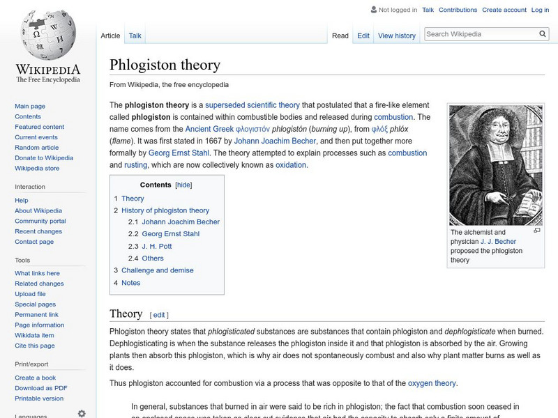 Wikipedia offers detailed information on the Phlogiston Theory, a discredited 17th century theory hypothesis regarding combustion.