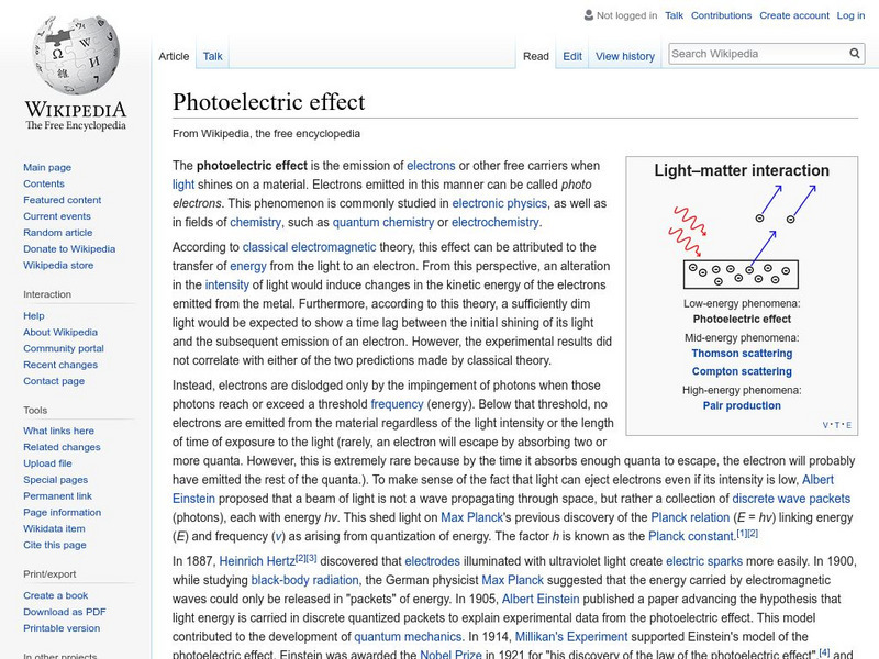 Wikipedia provides excellent information on the photoelectric effect, including it's history, explanations, common uses, and more.