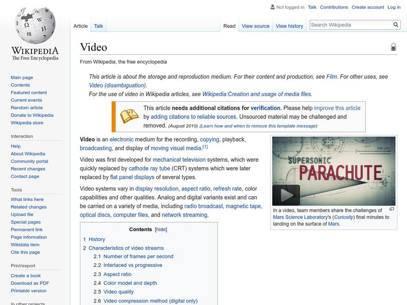 Wikipedia provides a simple definition of the term, "Video," including many hyperlinked words and an external link.