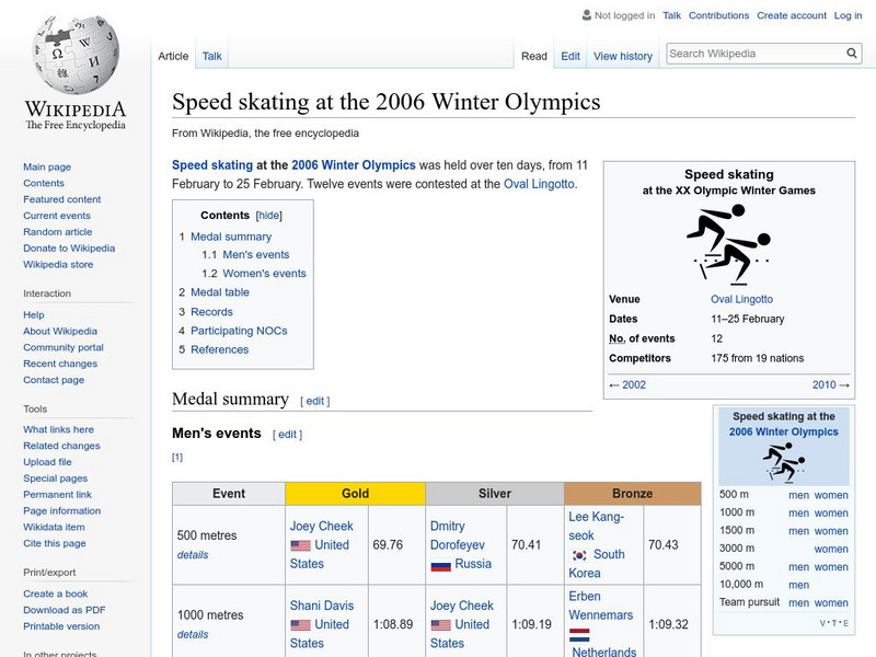 Wikipedia: Speed Skating at the 2006 Winter Olympics
