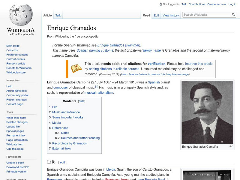 A brief biography, and a list of works by the Spanish musician, Enrique Granados.
