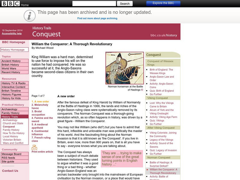 Bbc: History Trails: Conquest: William the Conqueror: A Revolutionary