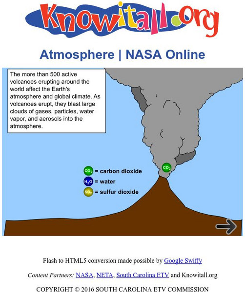 An interactive look at our atmosphere and factors which affect planet Earth. NASA measurements of volcanic eruptions, toxic emissions, aerosols, and wind patterns are all graphically displayed. Basic text plus bold visuals make this...