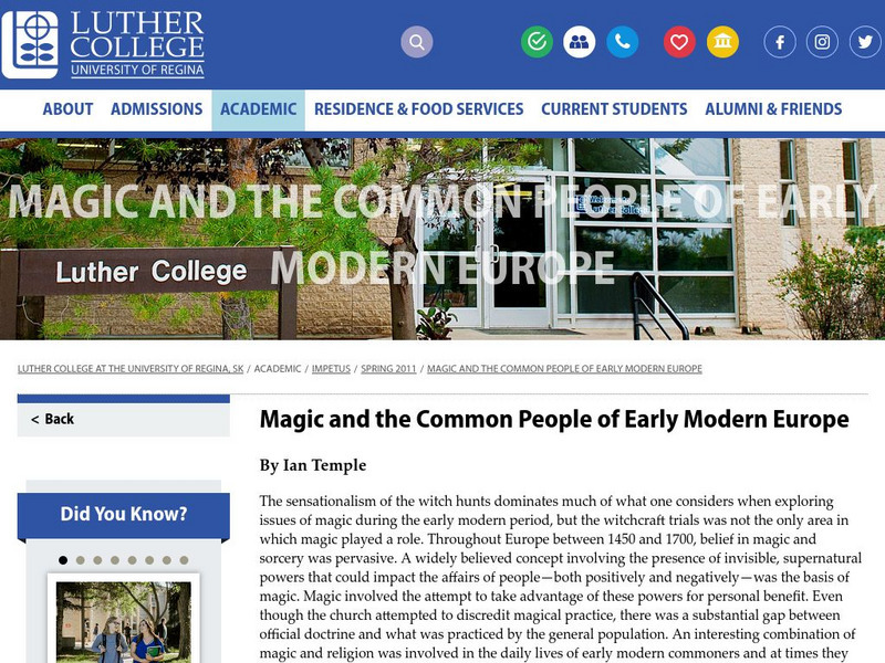 Examines the role that superstition and a belief in magic played in people's lives in early modern Europe.