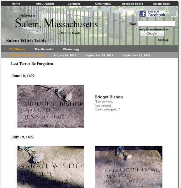 Use this site to learn what life was like in Salem during the late 1700s and history behind the Salem Witch Trials.