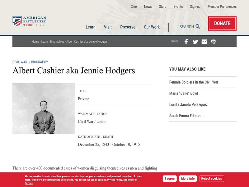 American Battlefield Trust: Civil War Biography: Albert Cashier Aka Jennie Hodgers: Private