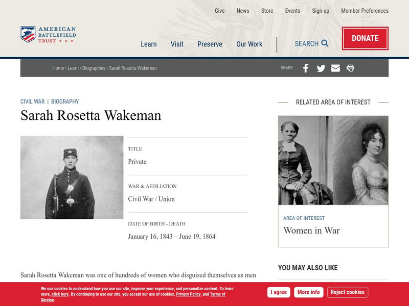 American Battlefield Trust: Civil War Biography: Sarah Rosetta Wakeman: Private