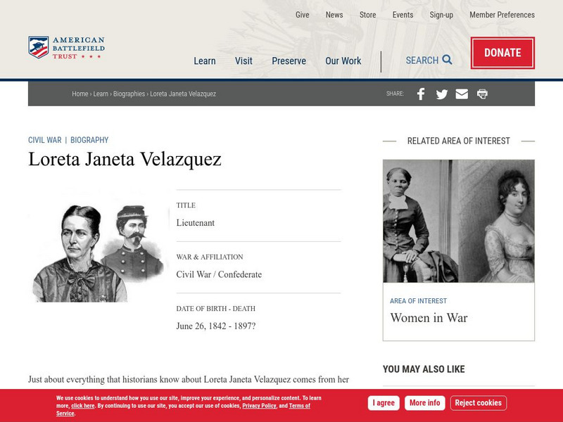 American Battlefield Trust: Civil War Biography: Loreta Janeta Velazquez: Lieutenant