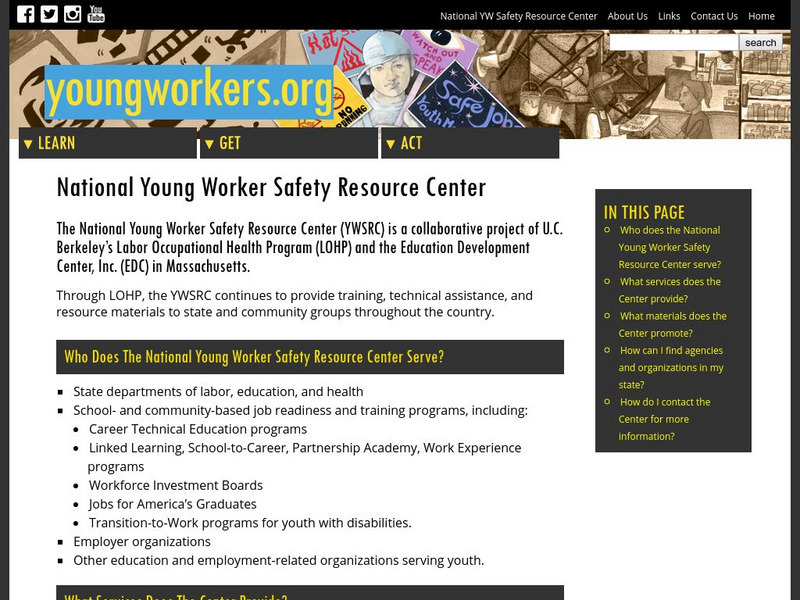 The basics about young worker health and safety. Includes information on workplace rights and responsibilities, work hours, job restrictions, hazards on the job, and ways to prevent injuries, as well as educational resources and factsheets.