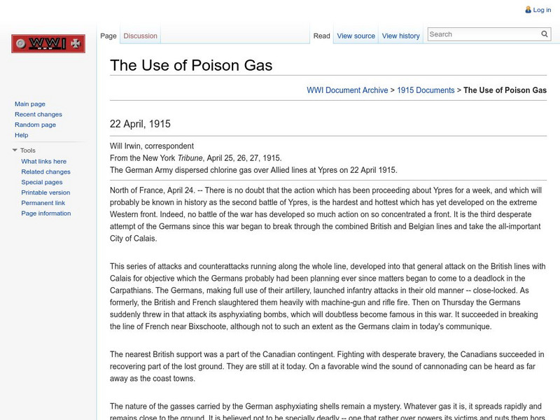 Two stories by reporter Will Irwin, correspondent from the New York Tribune, about how poisonous gases were used by the Germans during World War I.