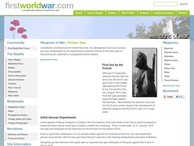 FirstWorldWar.com offers a section titled "Weapons of War," that includes information on the development and use of poison gas.