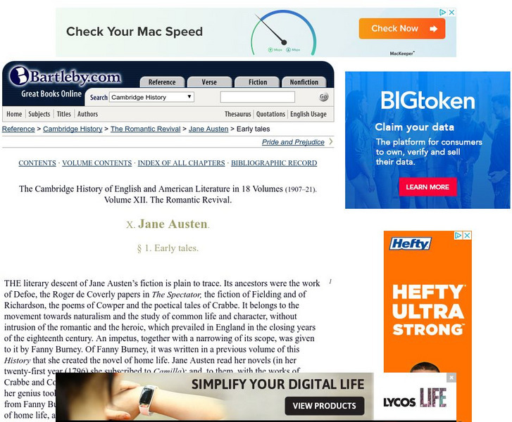 From the Cambridge History of Literature, provides analysis of the life, novels, and early works of Jane Austen.