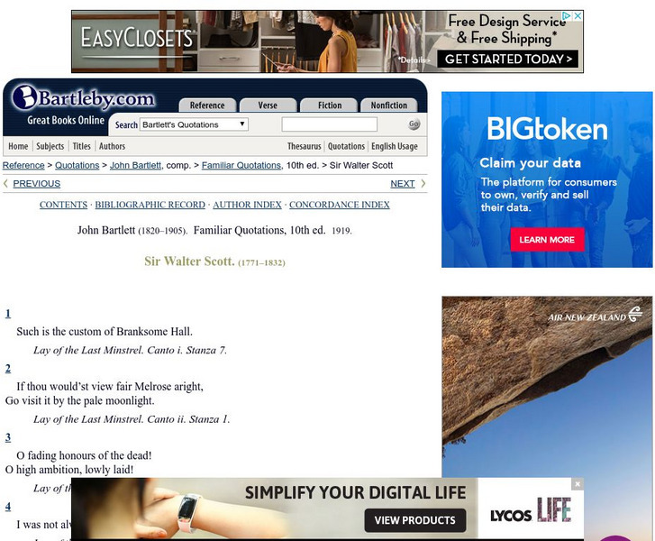 Seventy-nine quotes taken from the writings of Sir Walter Scott, with footnotes.