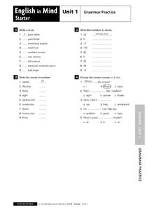 In this grammar practice worksheet, students practice using a or an, write words into number and numbers into words, and select the correct word to complete a sentence. Students answer thirty three short answer and multiple choice...