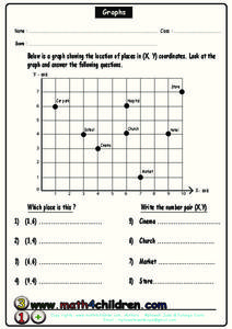 In this Cartesian coordinate plane worksheet, students analyze 4 ordered pairs and locate the place that goes with that point on a graph. Students also write the ordered pair for 4 places shown on the graph. Note: One of the places is a...