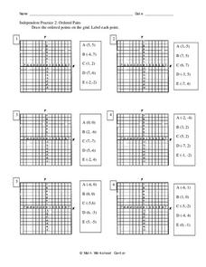 In this ordered pairs worksheet, 10th graders solve and graph 6 different sets of points on each graph. First, they draw each of the given ordered pairs in each problem on the gird shown. Then, students label each of these points on the...
