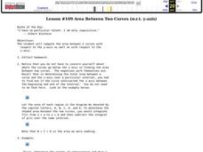 Students engage in a lesson that is concerned with the concept of computing the area between 2 curves with respect to the x and y axis. They concentrate on using positive and negative intervals and find the curve while determining the...