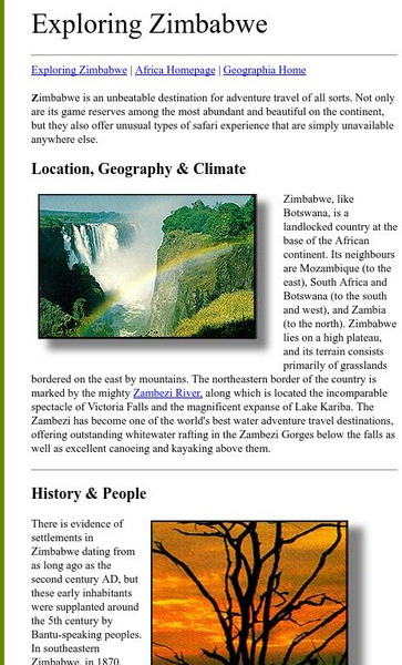 InterKnowledge Corp provides basic facts about the location, geography, climate, history and culture of the country Zimbabwe.