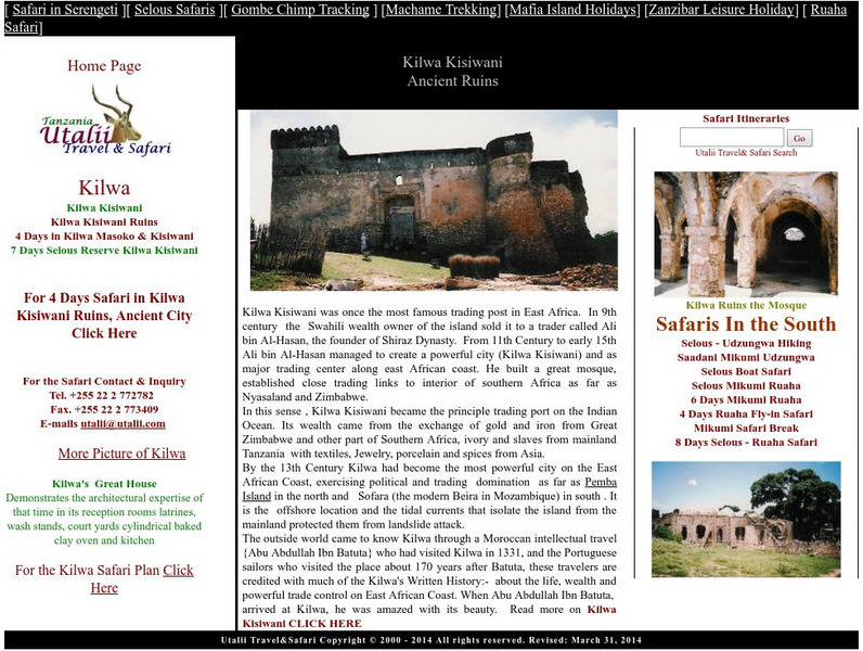 This site provides an extensive description of the ancient city of Kilwa, the oldest city in Eastern Africa.