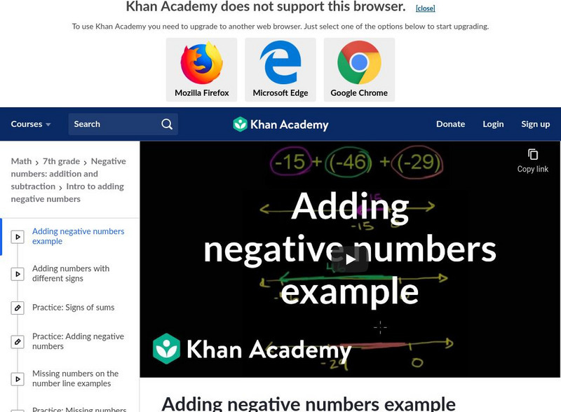 Khan Academy: Adding & Subtracting Negative Numbers