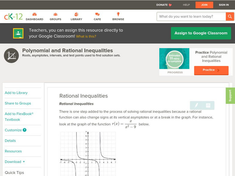 Ck 12: Analysis: Polynomial and Rational Inequalities