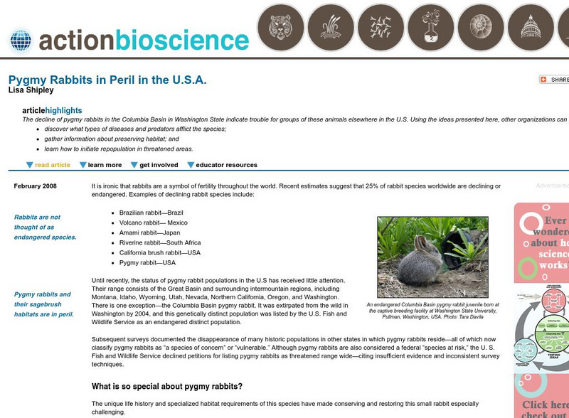 Action Bioscience: Pygmy Rabbits in Peril in the u.s.a.