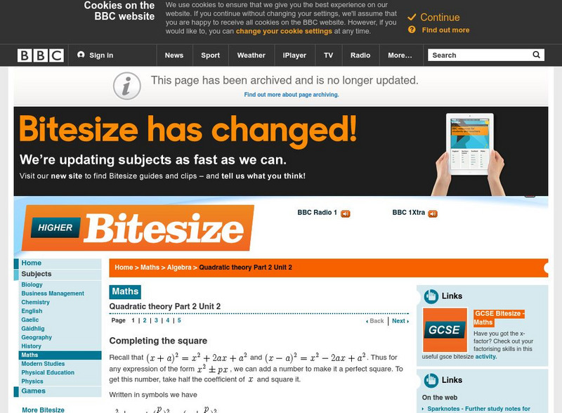 Bbc: Higher Bitesize Maths: Quadratic Theory