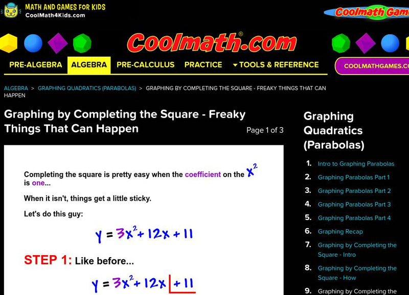 Coolmath: Graphing by Completing the Square Freaky Things That Can Happen