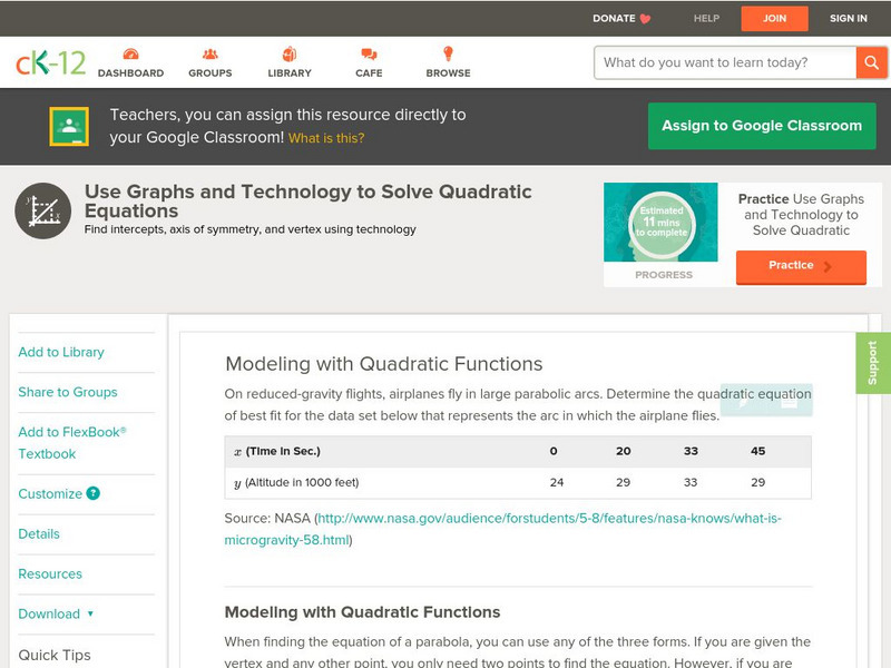 Ck 12: Algebra: Use Graphs to Solve Quadratic Equations