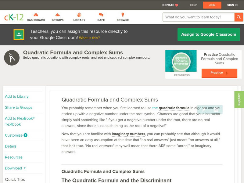 Ck 12: Analysis: Quadratic Formula and Complex Sums