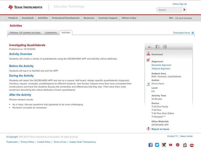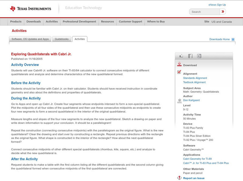 Texas Instruments: Exploring Quadrilaterals With Cabri Jr.