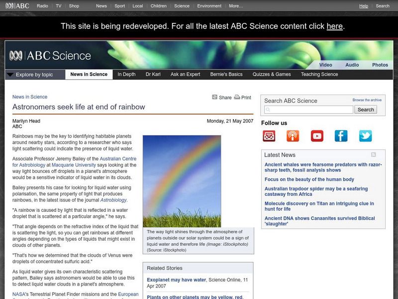 Australian Broadcasting Corporation: News in Science: Astronomers Seek Life at End of Rainbow