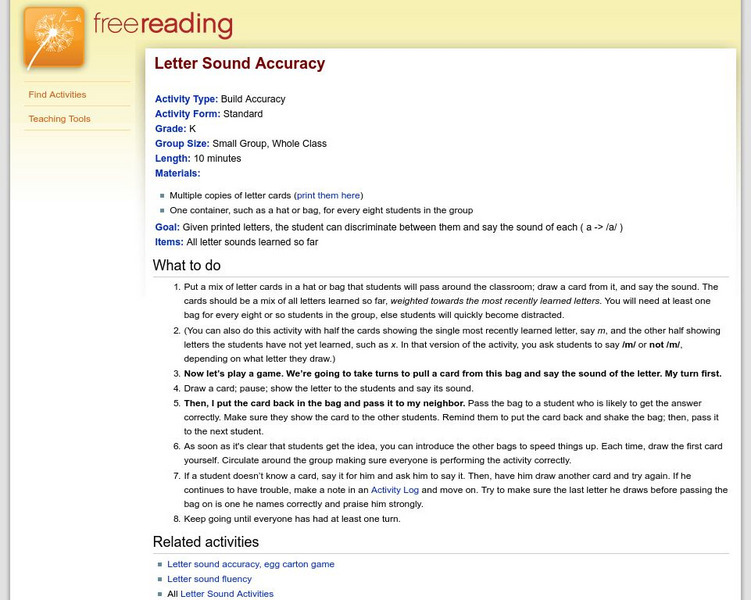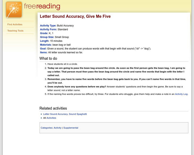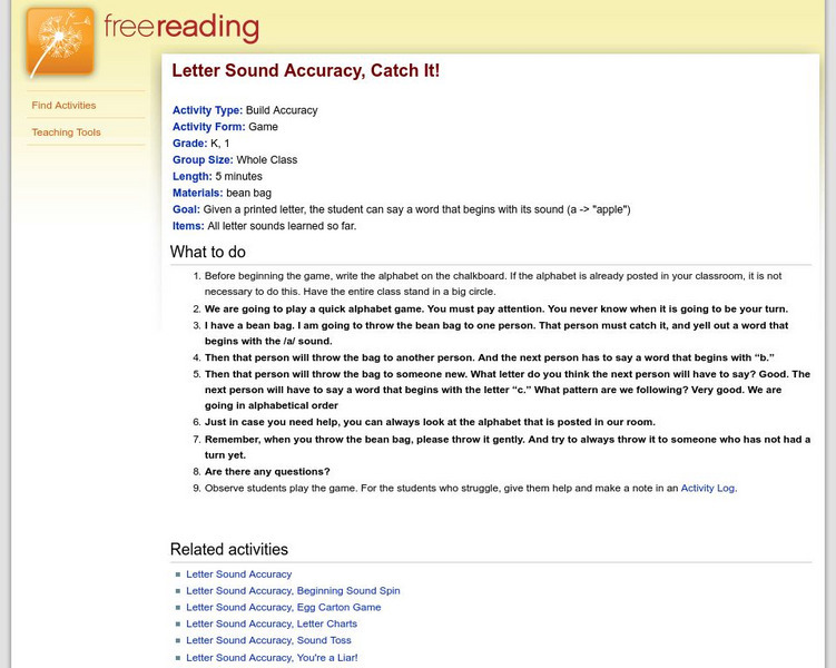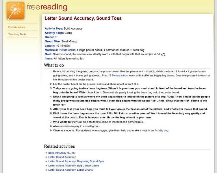 Free Reading: Sound Toss Game; Letter Sound Accuracy