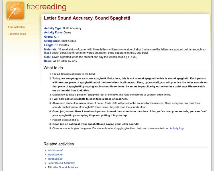 Free Reading: Sound Spaghetti; Letter Sound Accuracy Game