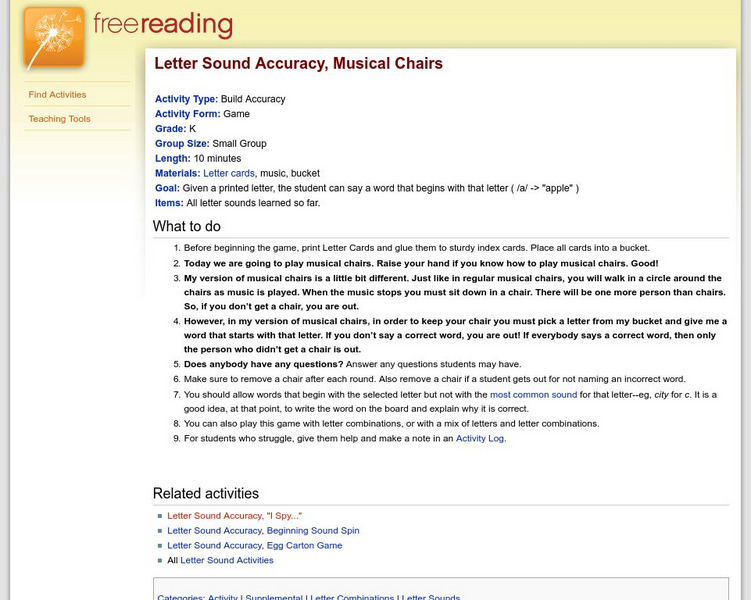 Free Reading: Musical Chairs Game; Letter Sound Accuracy