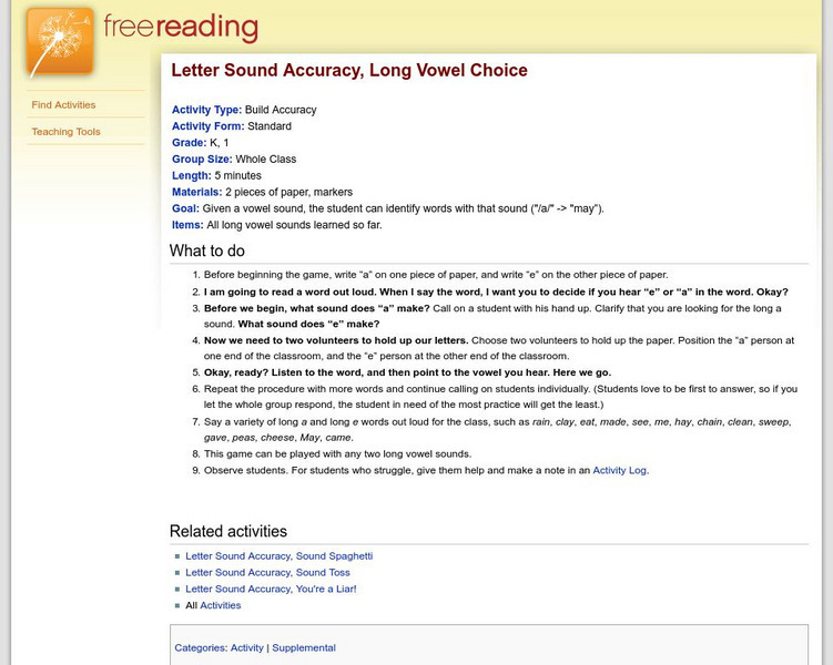Free Reading: Long Vowel Choice Game; Letter Sound Accuracy