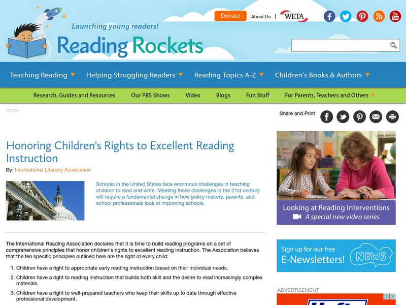 Reading Rockets: Honoring Kid's Rights to Excellent Reading Instruction
