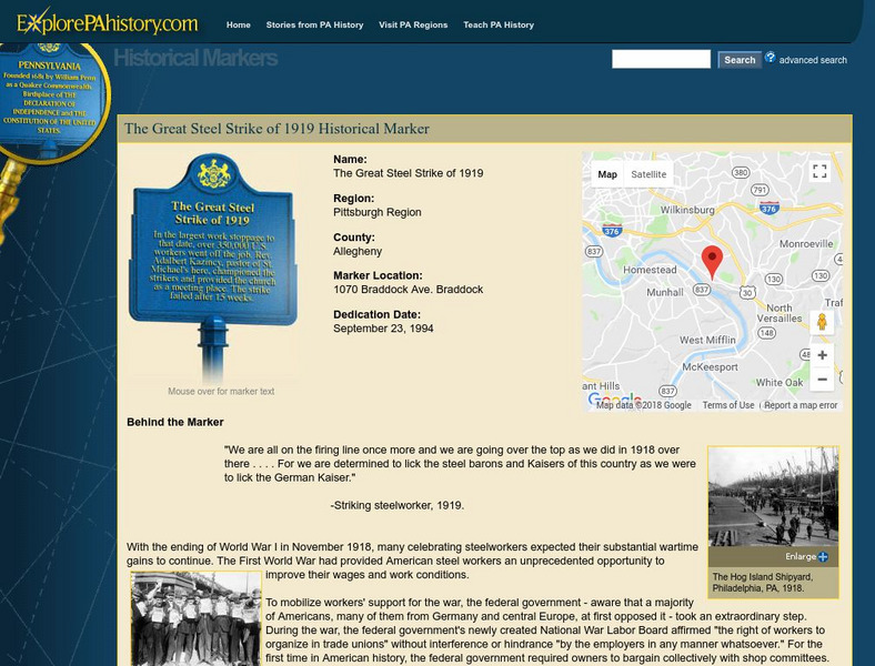 Explore Pa History: The Great Steel Strike of 1919 Historical Marker