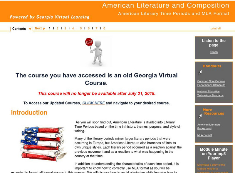 Ga Virtual Learning: American Literary Time Periods and Mla Format Introduction