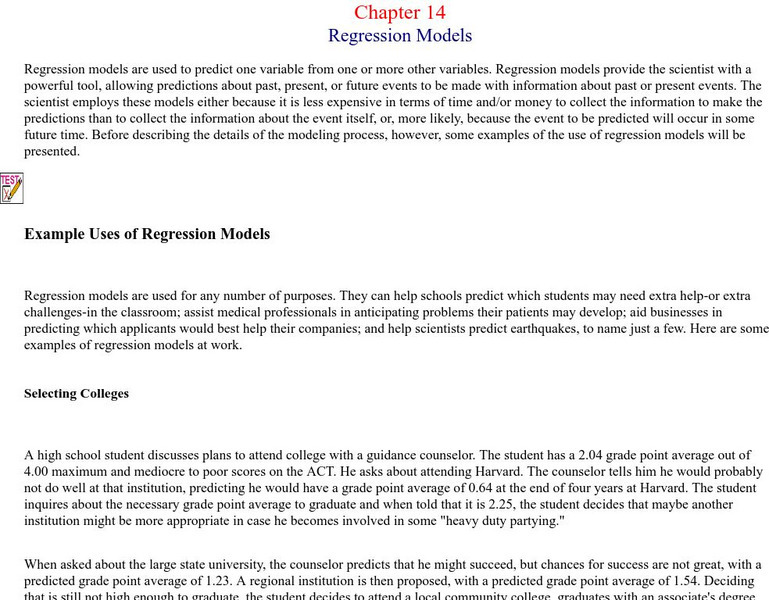 Missouri State University: Introductory Statistics: Linear Regression Models